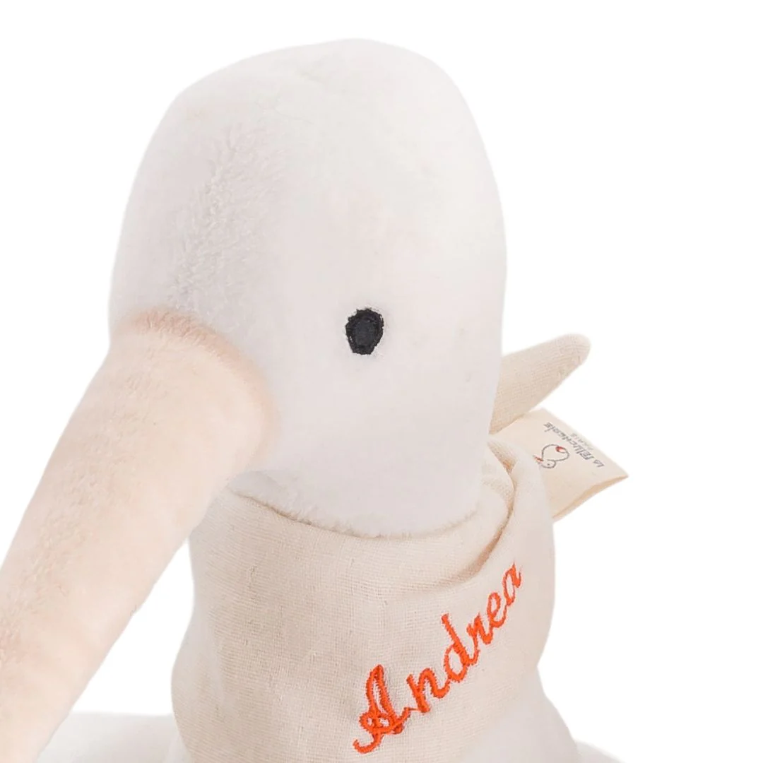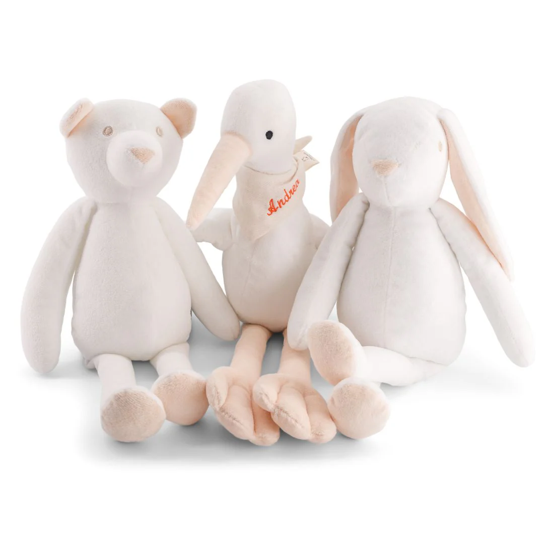 Je suis Mon Premier doudou Cigogne, un doudou indispensable ! J’accompagne les nouveaux-nés durant les précieux premiers instants de leurs vies ! Je suis un oiseau de bon augure qui portera chance dès le berceau. Mon long bec et mes longues pattes permettront à bébé de m’attraper facilement. Tout blanc et tout doux avec mon tissu hypoallergénique et effet velours, je suis idéal pour les bébés qui mettent tout en bouche. Je suis lavable en machine et je ressors comme neuf ! Idéal à la fois pour les filles et les garçons !
