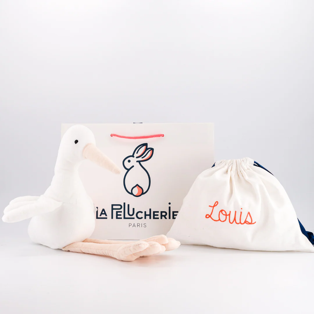 Il est conseillé d’avoir deux doudous identiques pour en avoir un de rechange. Pour un cadeau de naissance très complet et original, n’hésite pas à ajouter le kit naissance et à faire personnaliser la pochette brodée !