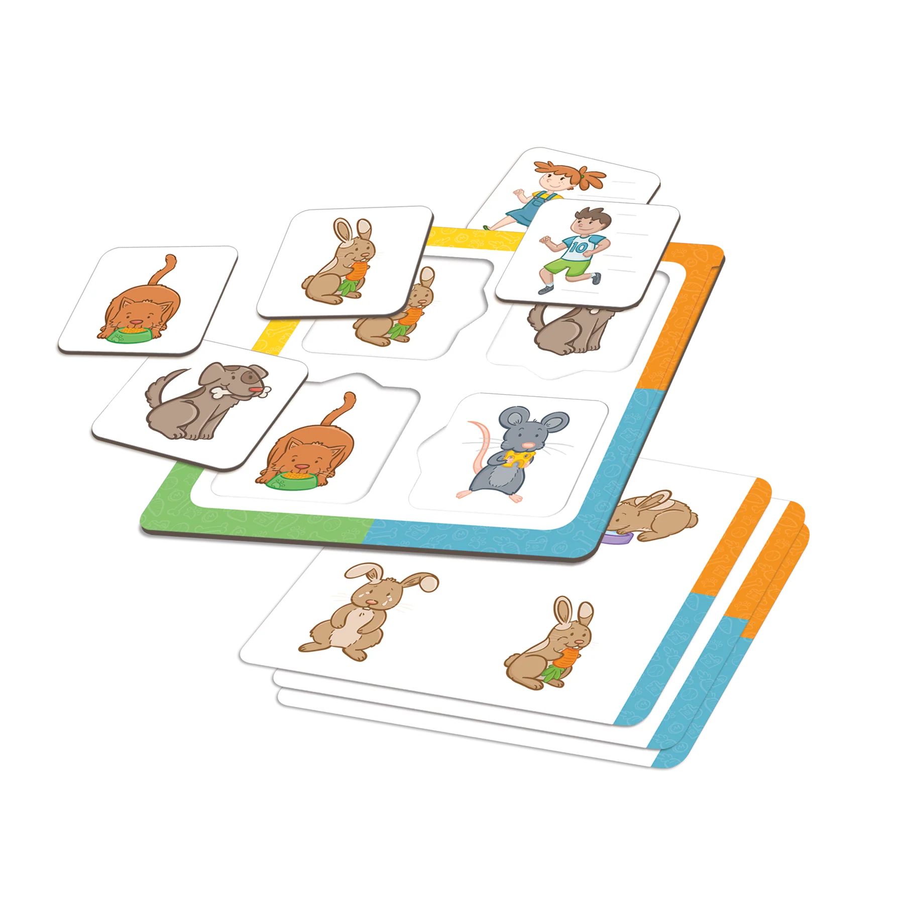 A bunch of little friends are here for you to play with. Are you ready to tell us what they’re doing? It’s easy: just match identical pictures by placing the cards in the right spots.
