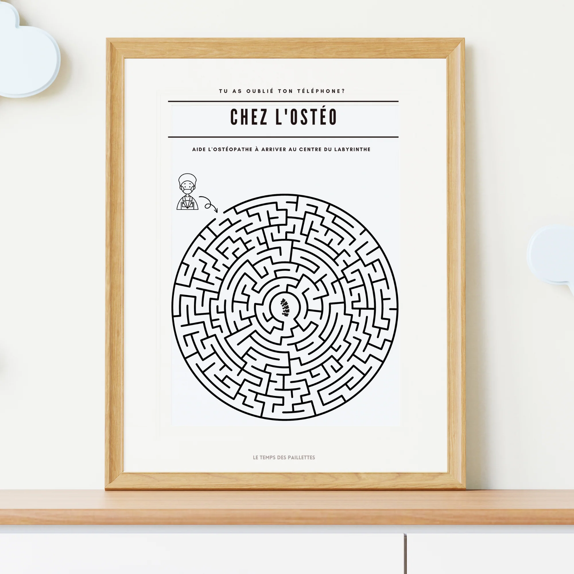 Poster labyrinthe Chez l’ostéopathe – Affiche minimalistes Chez le docteur – Affiche salle d’attente ostéopathe par Le Temps des Paillettes