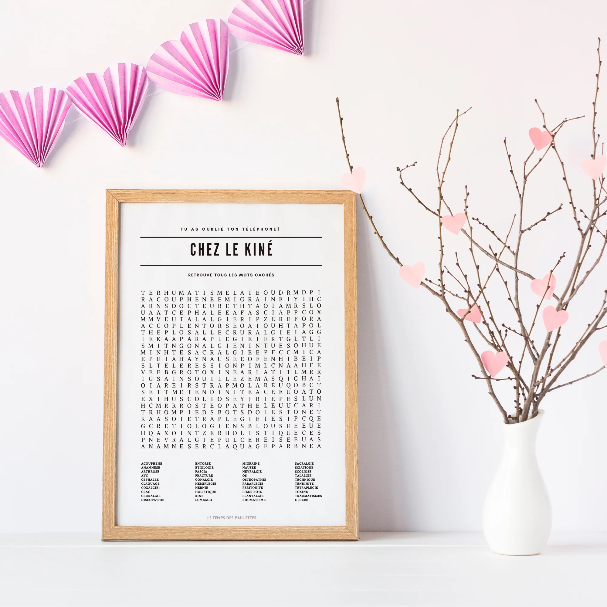 Poster Mots Mêlés pour salle d’attente kiné – Offrez à vos patients un moment de détente et de distraction avec notre affiche ludique. Conçue pour les salles d’attente des kinésithérapeutes et ostéopathes, elle apporte une touche originale tout en rendant l’attente plus agréable. Découvrez aussi nos autres affiches : mots mêlés, définitions, citations… Idéal pour créer un espace accueillant et apaisant. Vos patients vont adorer ! 😊
