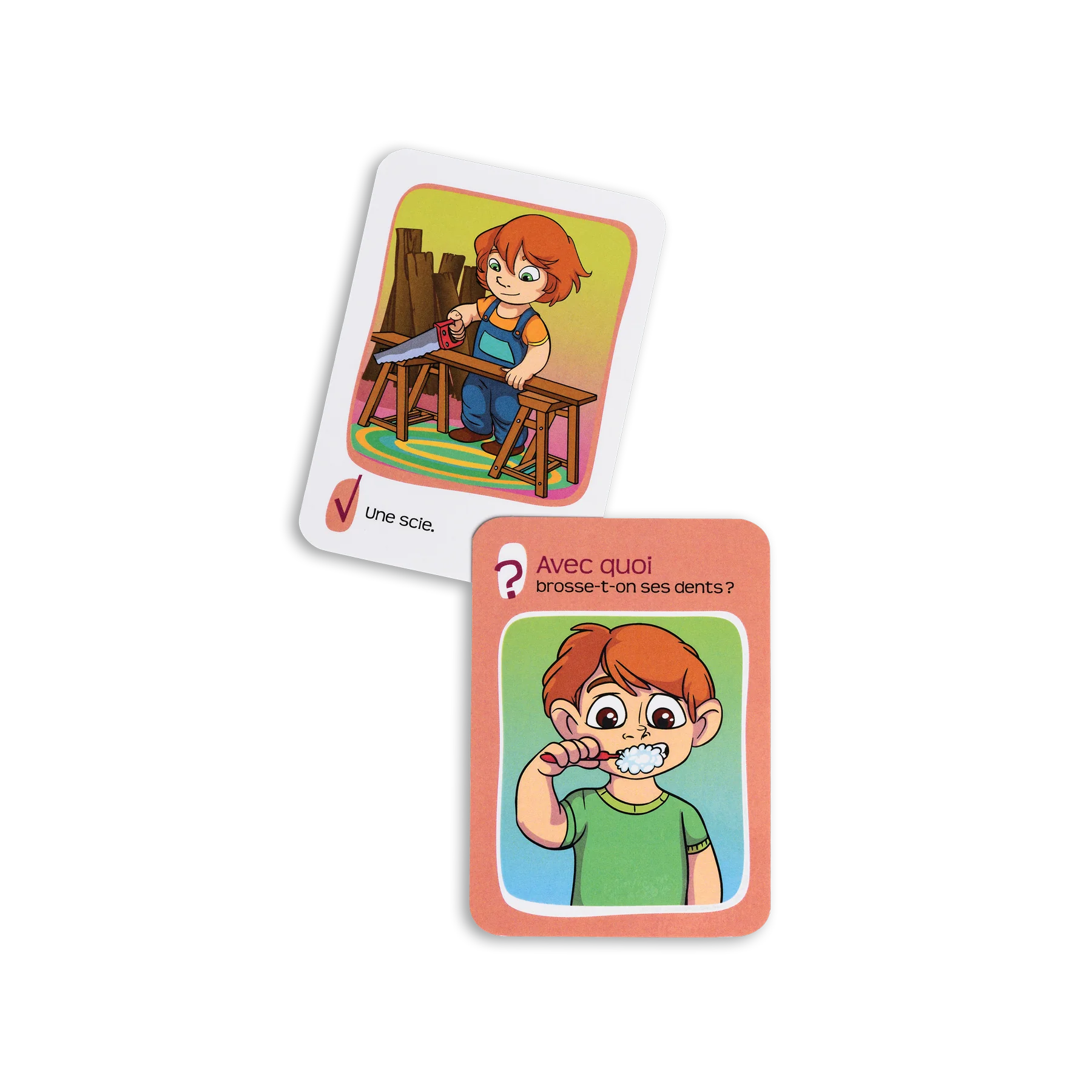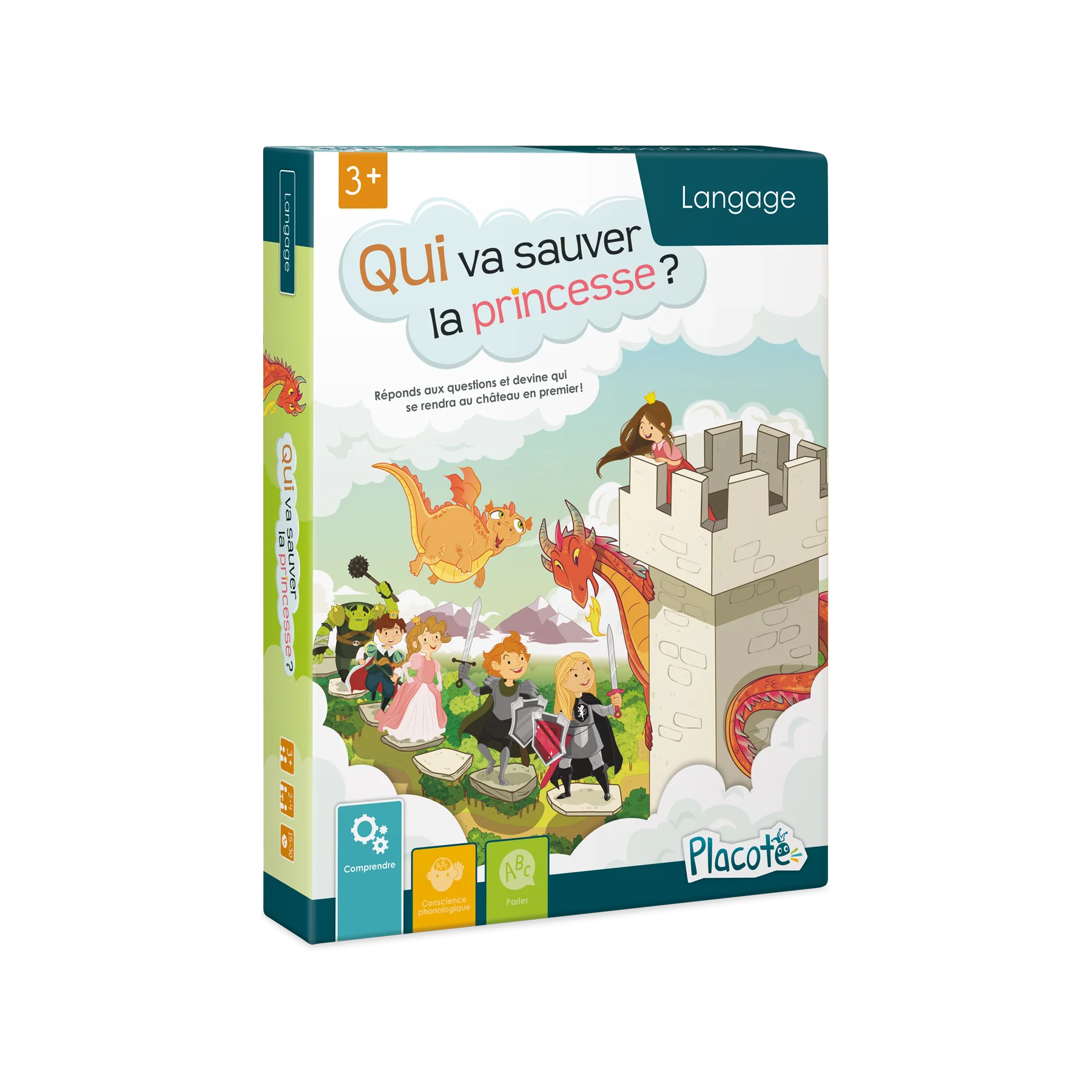 Qui va sauver la princesse? est conçu pour aider les enfants de 3 à 6 ans à comprendre des questions formulées avec les mots interrogatifs «où», «qui», «avec quoi» et «quand» qui font appel à leurs connaissances personnelles. Les cartes questions-réponses illustrées leur permettent de valider eux-mêmes leurs réponses.