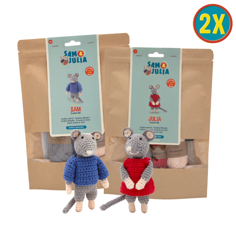 Of course you would want to knit these best friends together. With this bundle you get both with a nice discount! These sets contain the patterns, quality blended yarn, and other materials you need to crochet both Sam and Julia (excl. crochet hook). Each mouse is about 12 cm tall and perfectly sized to live in your self-made Mouse Mansion.