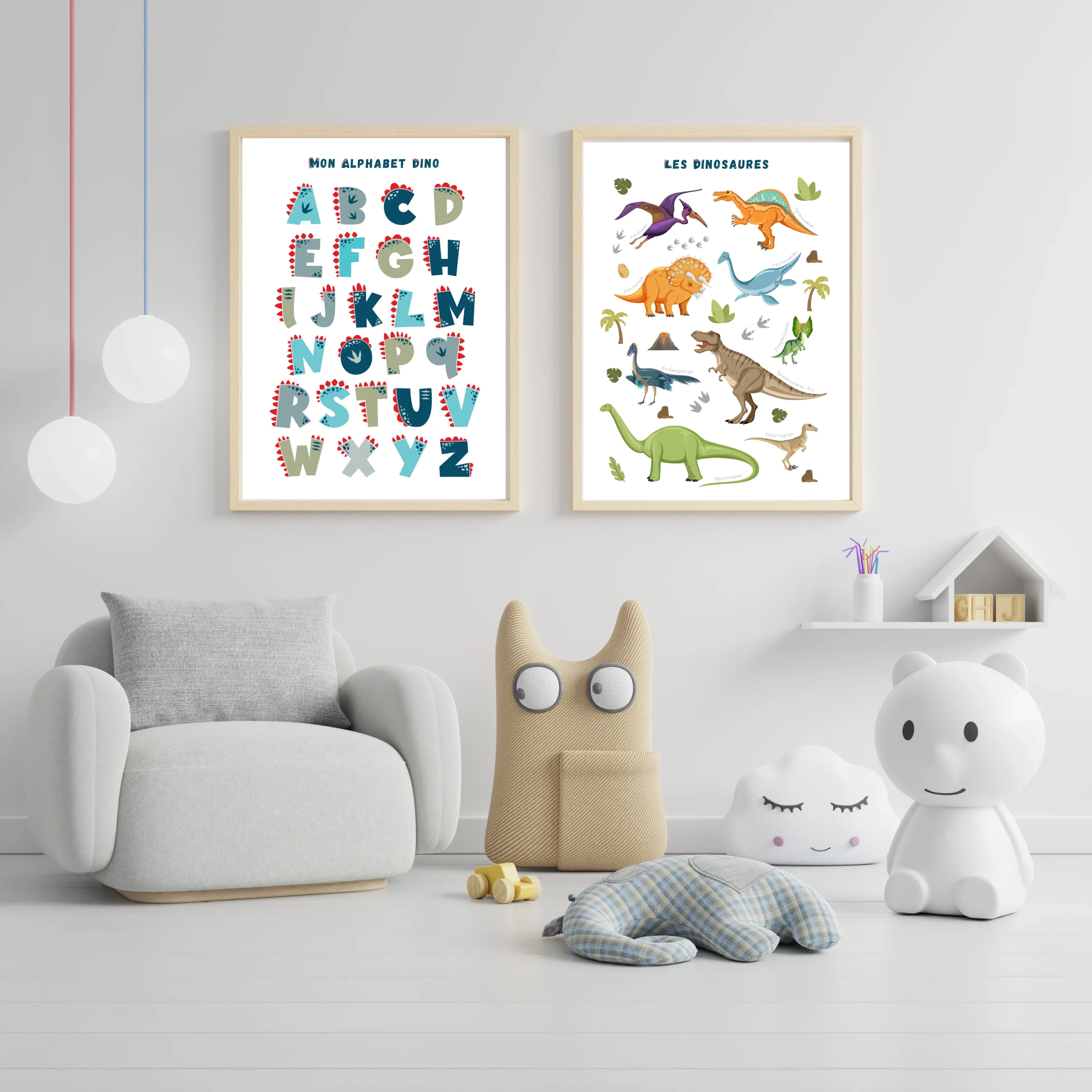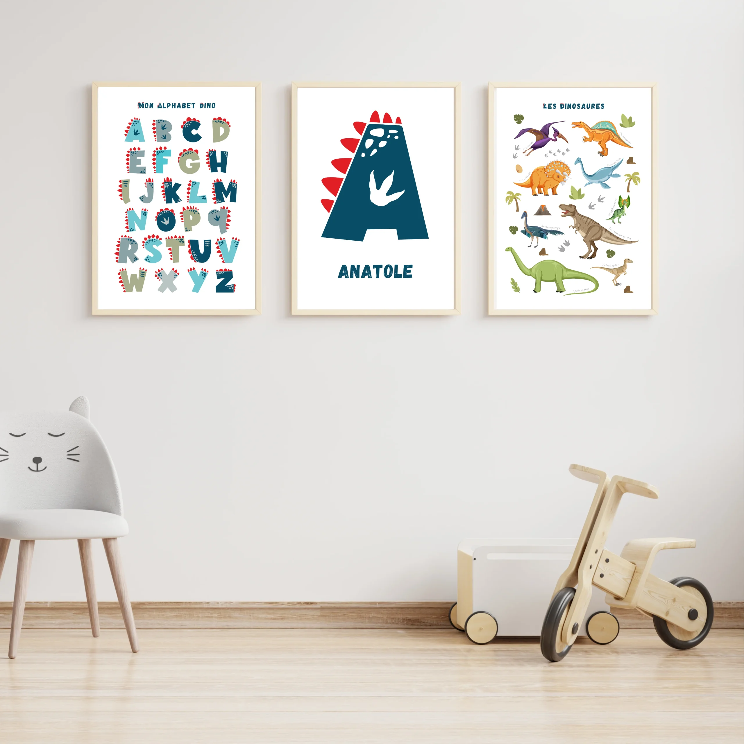 Set affiche enfant dinosaures personnalisé – Affiche chambre de garçon personnalisé – décoration dinosaure par Le Temps des Paillettes