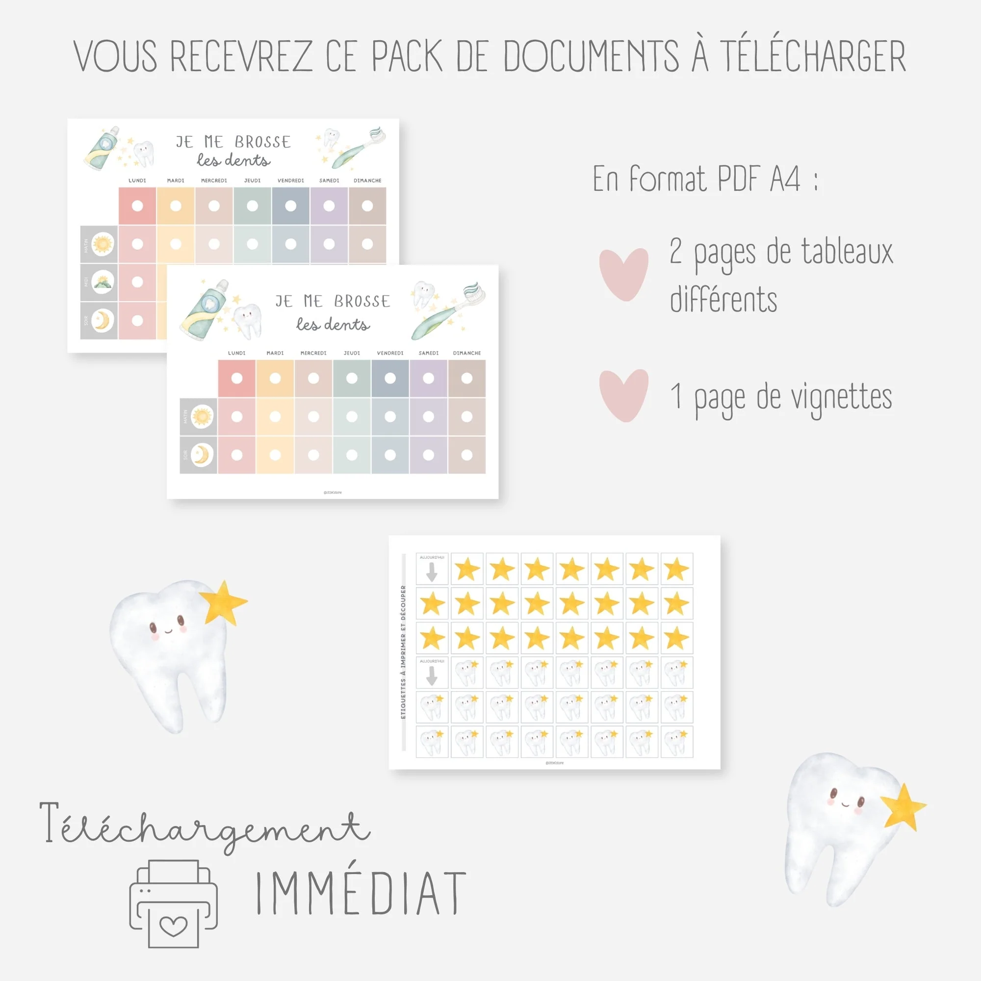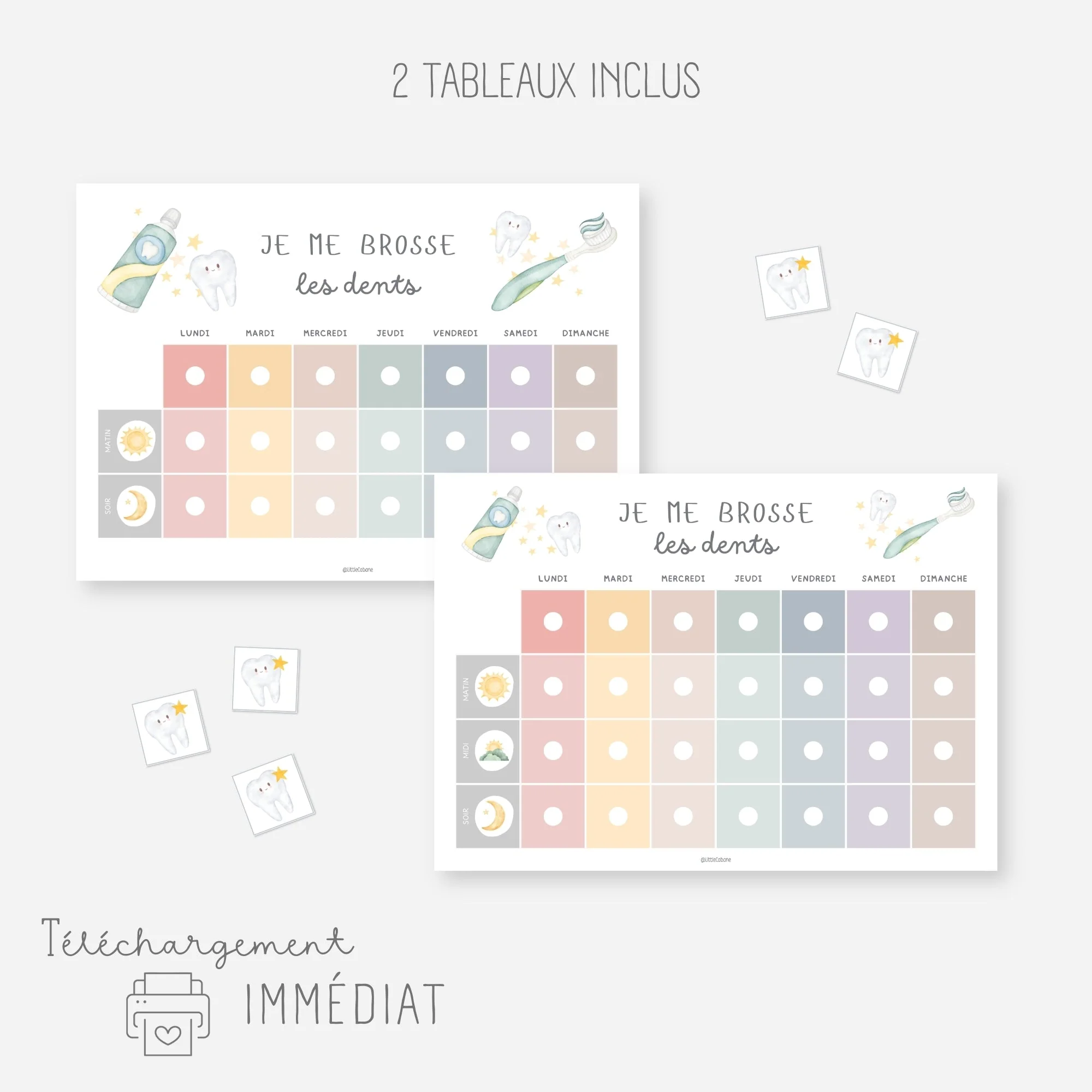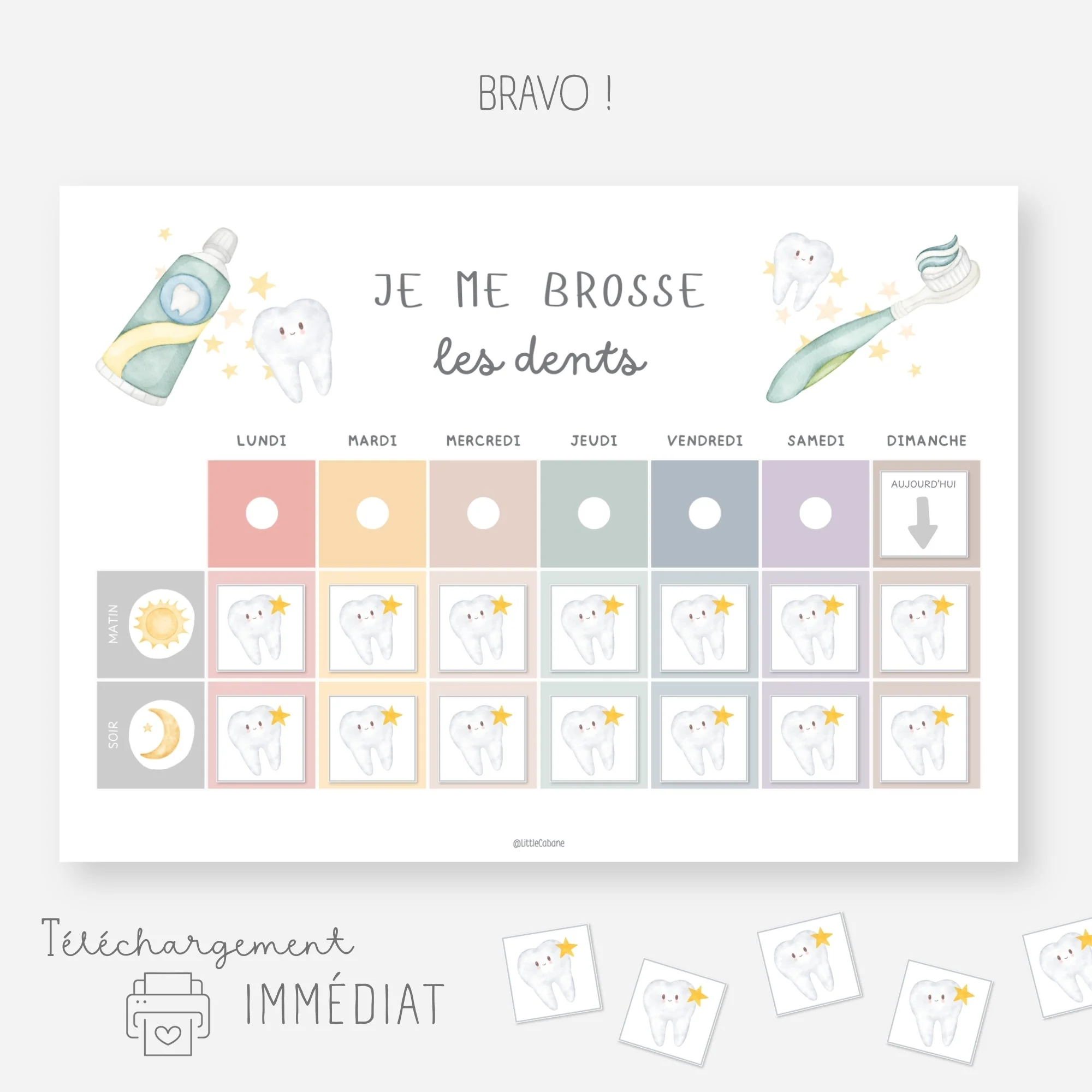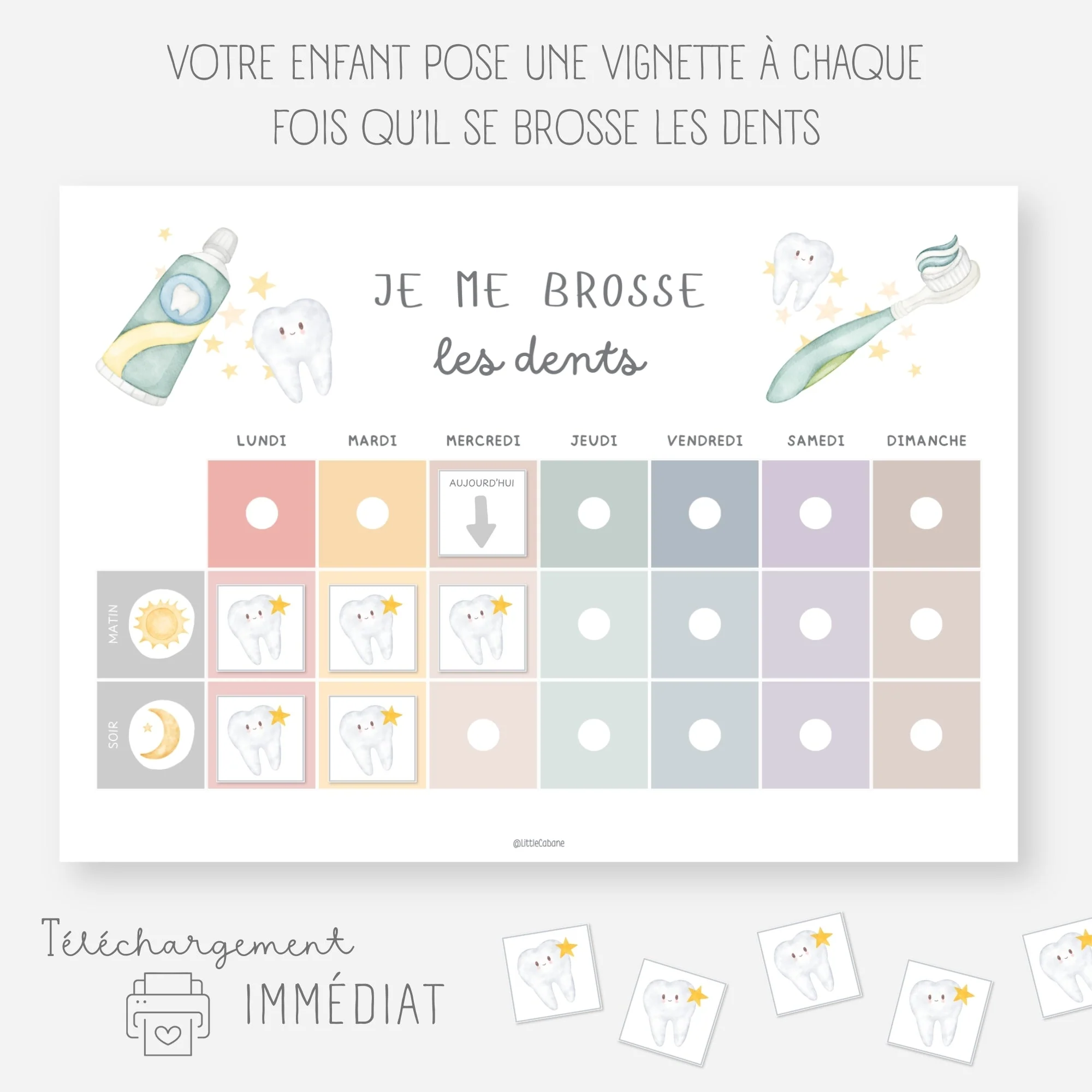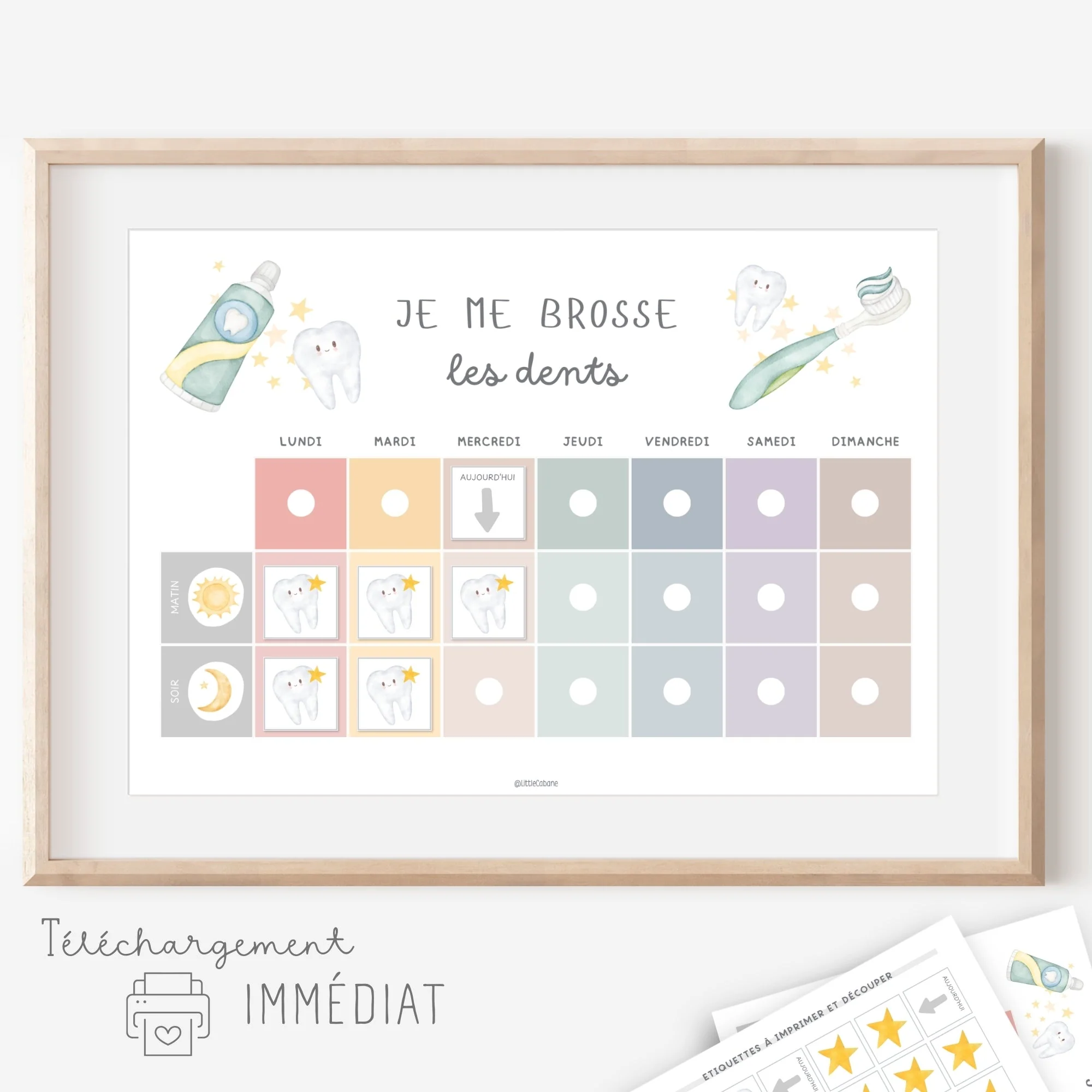 À chaque brossage des dents, votre enfant posera une vignette sur le tableau. Votre enfant sera acteur de ses routines et donc beaucoup plus motivé !