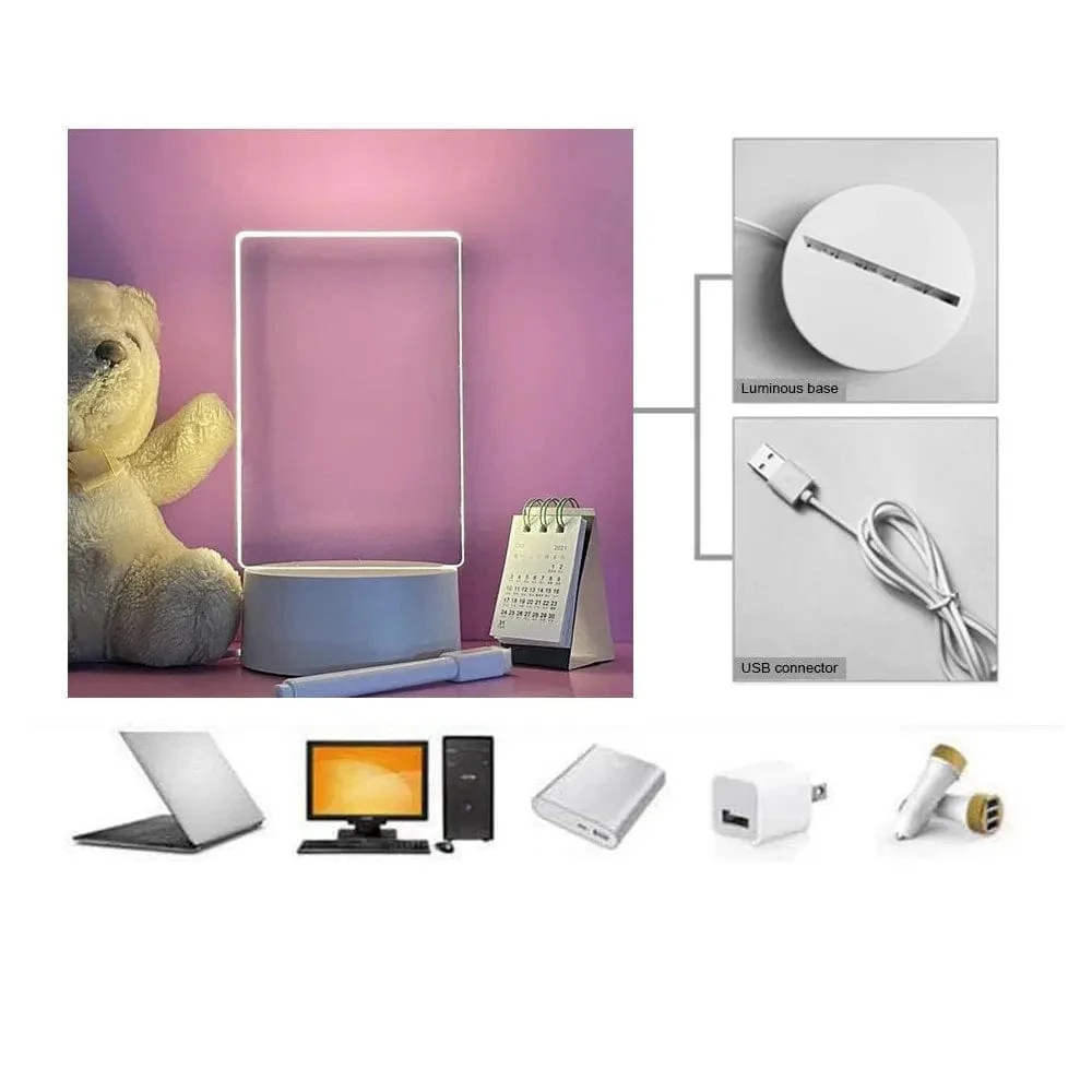 Que ce soit comme tableau mémo pour les tâches quotidiennes, veilleuse apaisante pour les nuits paisibles ou cadeau original pour vos proches, cette veilleuse LED s’adapte à tous les besoins. Son design 3D créatif et sa facilité d’utilisation en font un accessoire indispensable pour toute maison ou bureau. Transformez votre espace avec notre veilleuse LED transparent et créez des moments lumineux et mémorables.