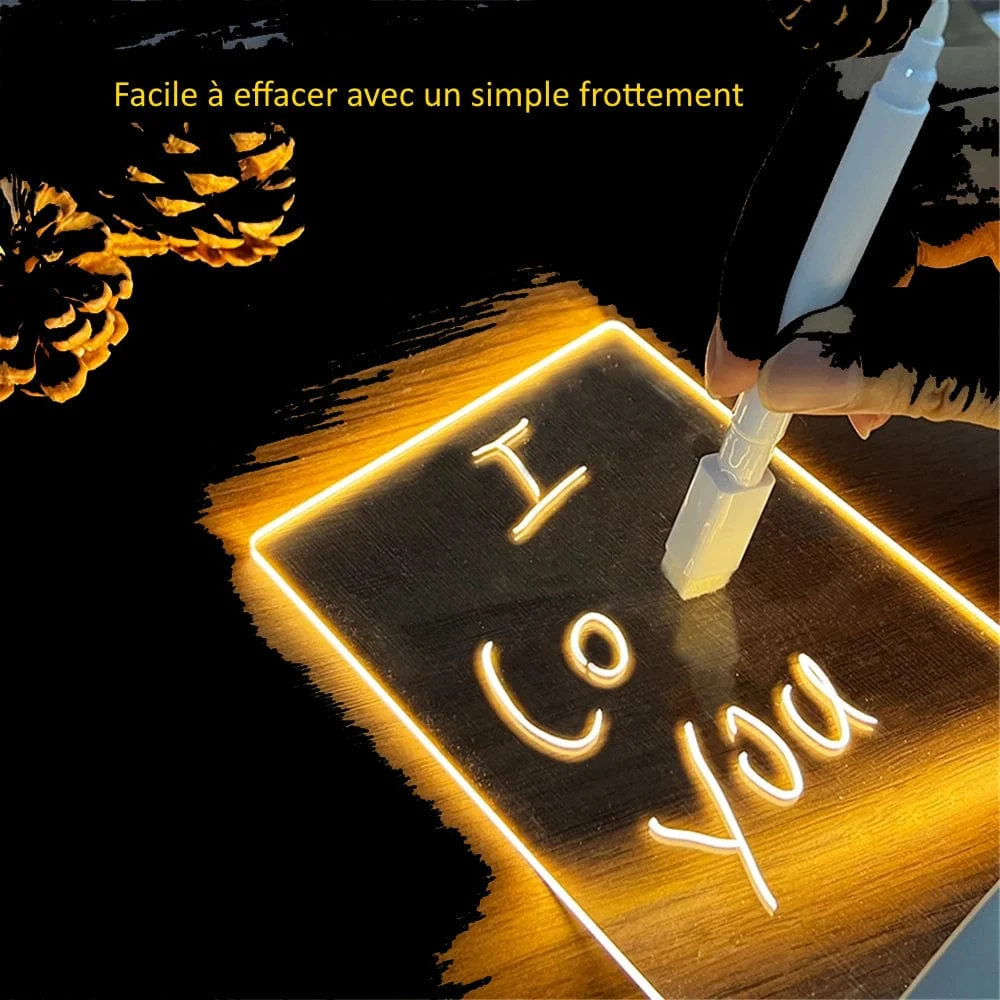 Offrez à votre espace une touche d’originalité avec notre veilleuse LED transparent effaçable. Dotée d’un panneau transparent et d’un stylo effaçable, cette veilleuse vous permet de laisser libre cours à votre créativité en écrivant des messages inspirants ou en dessinant des motifs uniques. Transformez votre pièce en un lieu de détente et d’inspiration.