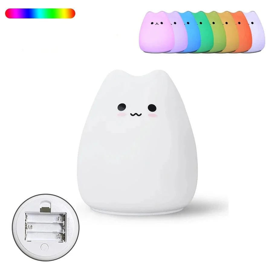 Plongez votre bébé dans un monde doux et apaisant avec notre veilleuse en silicone doux chaton. Sa lumière LED douce crée une ambiance chaleureuse, idéale pour des nuits paisibles. Plus qu’une simple veilleuse, elle devient un compagnon rassurant pour votre tout-petit.