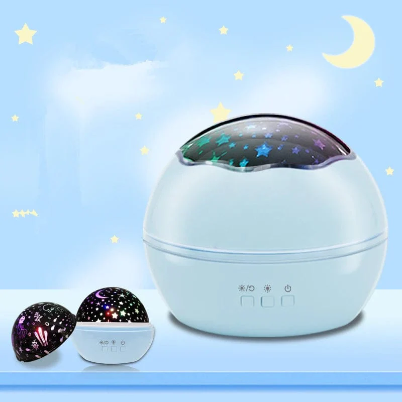 Rotation à 360° pour un Effet Saisissant La lampe du projecteur peut tourner à 360°, offrant une vision dynamique ou statique à couper le souffle. Parfait pour apaiser les enfants à l’heure du coucher, cette lumière crée une atmosphère relaxante et réconfortante. La veilleuse peut être alimentée par batterie AAA ou une entrée USB.