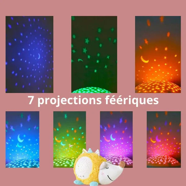 Aide au Sommeil Polyvalente : Dotée d’un projecteur et de musique apaisante, bruits blancs, cette peluche veilleuse bercera votre nouveau-né dans un sommeil paisible. Facile à utiliser, elle fonctionne avec 3 piles AAA (non incluses).