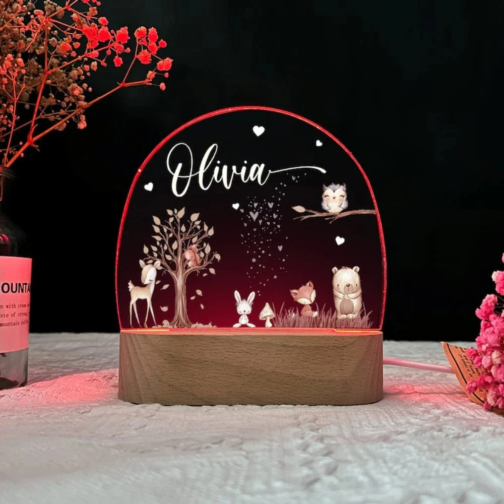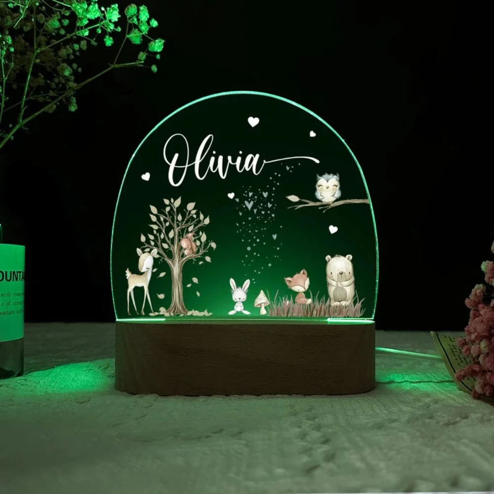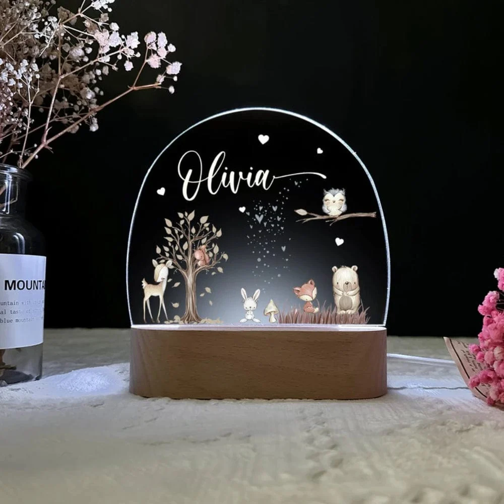 Transformez l’heure du coucher en une expérience enchantée grâce à notre veilleuse personnalisée au nom de votre enfant et ornée de son animal préféré !