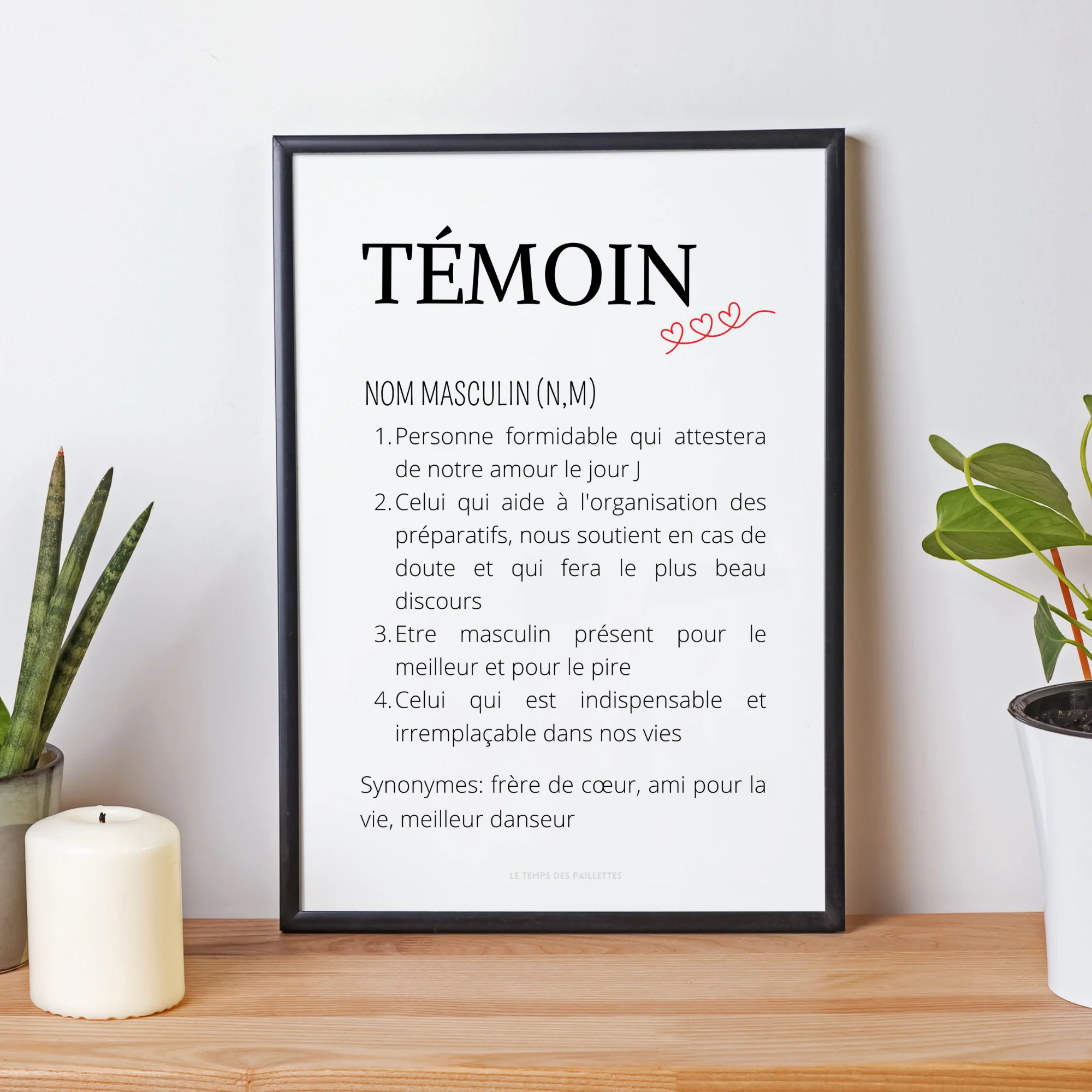 🎁 Une affiche unique pour faire plaisir à tous les témoins en toute occasion: noël, mariage, anniversaire, etc. C’est aussi une manière originale de faire votre demande.