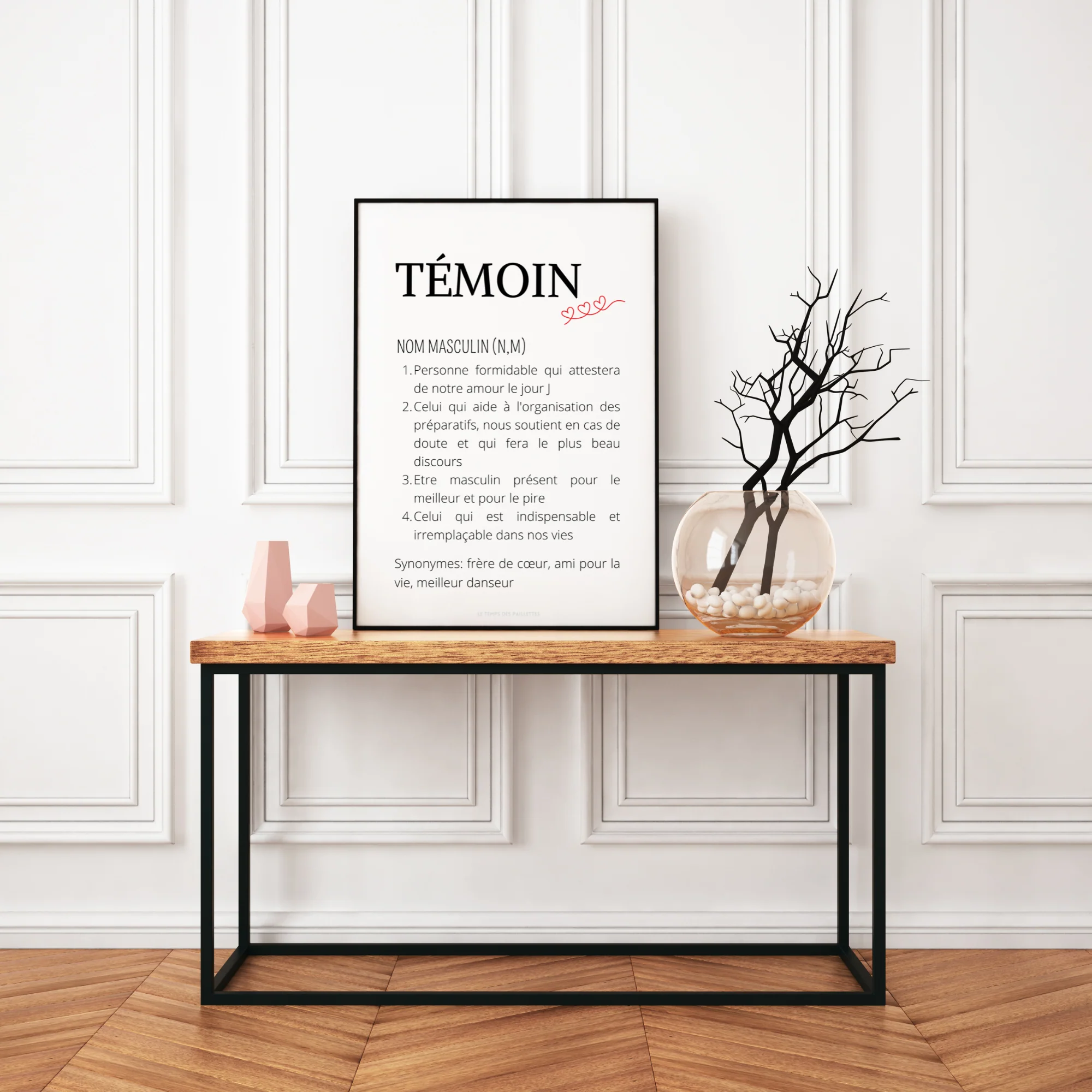 ❤️ Jolie affiche de définition témoin présentant une définition drôle et attachante d’un(e) super témoin.