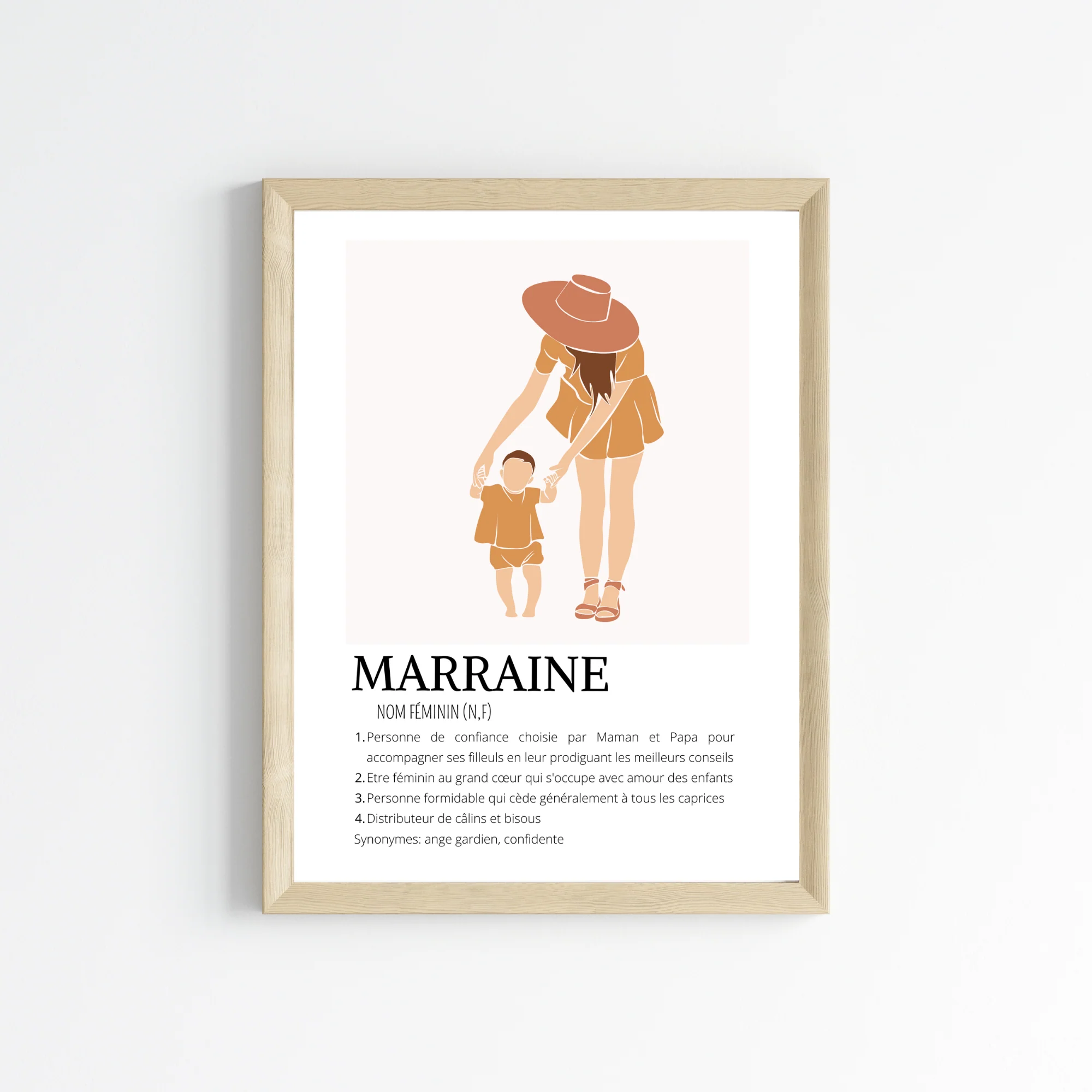 ❤️ Jolie affiche personnalisée pour marraine – une façon unique et spéciale de célébrer la marraine de vos enfants. Cette affiche est décorée avec une définition touchante d’une super marraine, accompagnée d’une illustration abstraite d’une marraine et d’un enfant.
