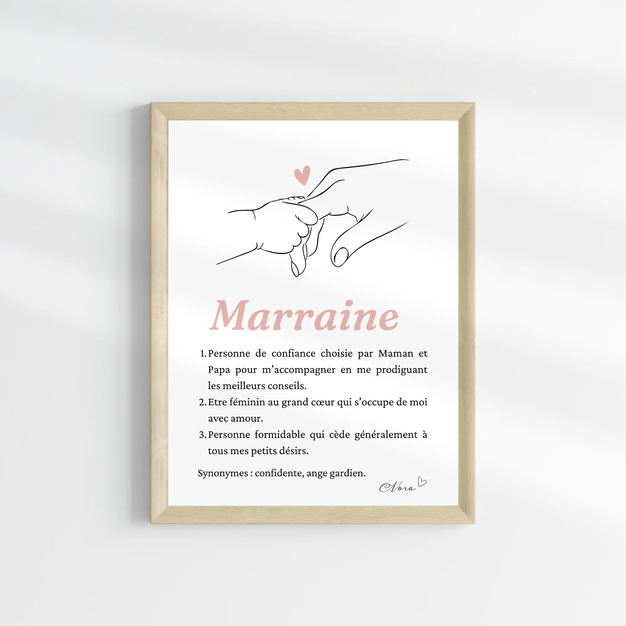 ❤️ Jolie affiche personnalisée pour marraine – une façon unique et spéciale de célébrer la marraine de vos enfants. Cette affiche est décorée avec une définition touchante d’une super marraine, accompagnée d’une illustration abstraite d’une marraine et d’un enfant.