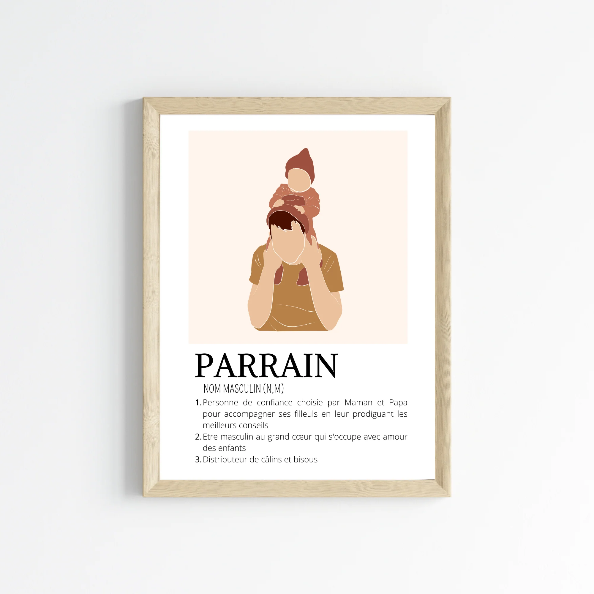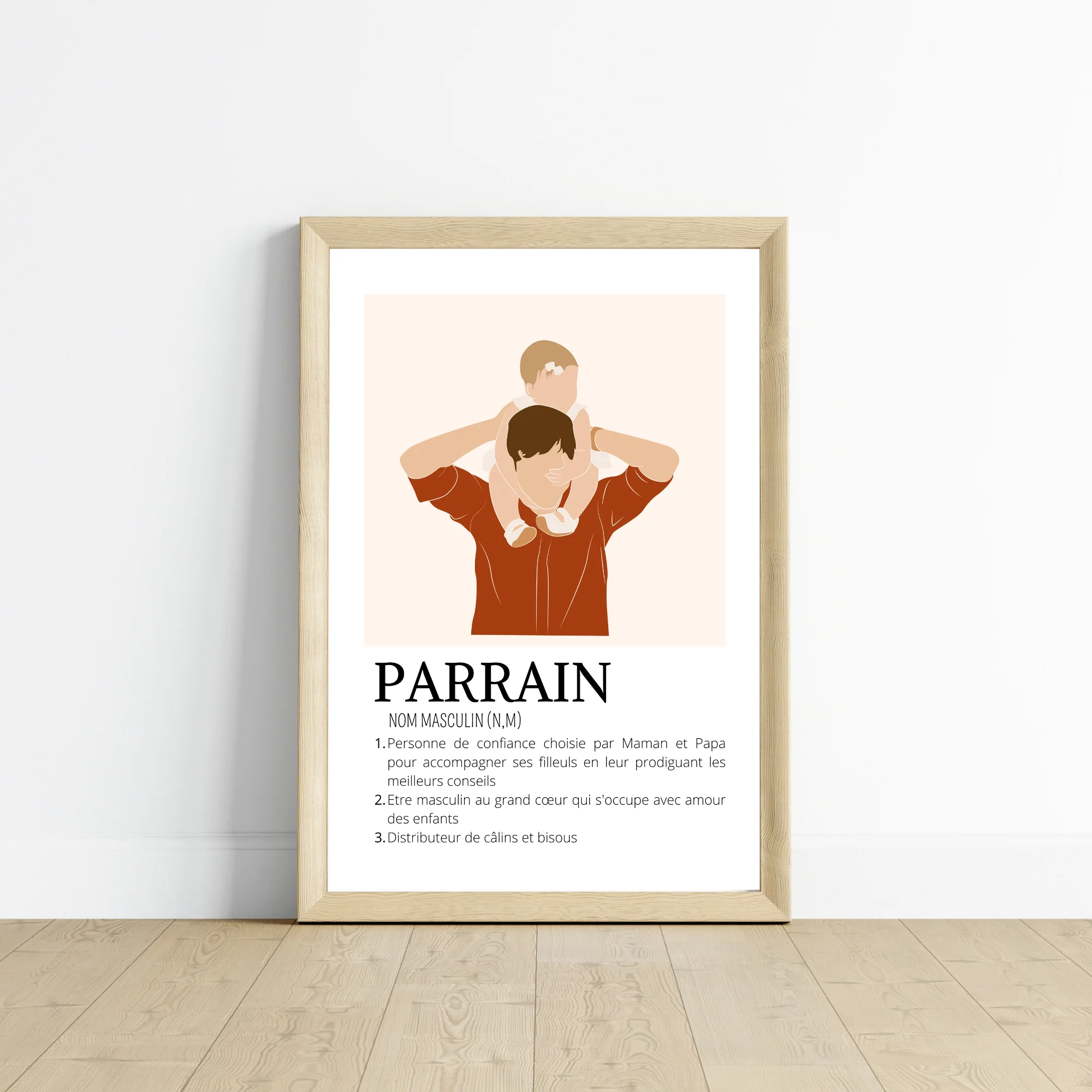 ❤️ Jolie affiche personnalisée pour parrain – une façon unique et spéciale de célébrer le parrain de vos enfants. Cette affiche est décorée avec une définition touchante d’un super parrain , accompagnée d’une illustration abstraite d’un parrain et d’un enfant.