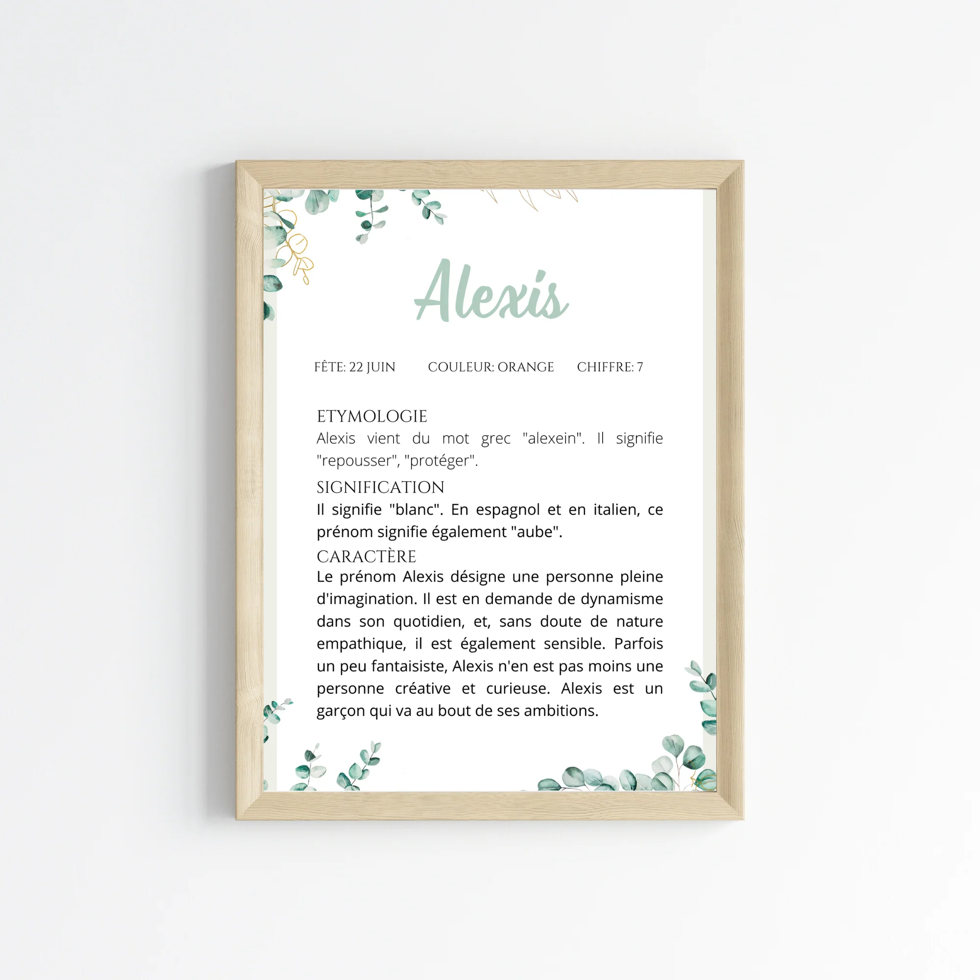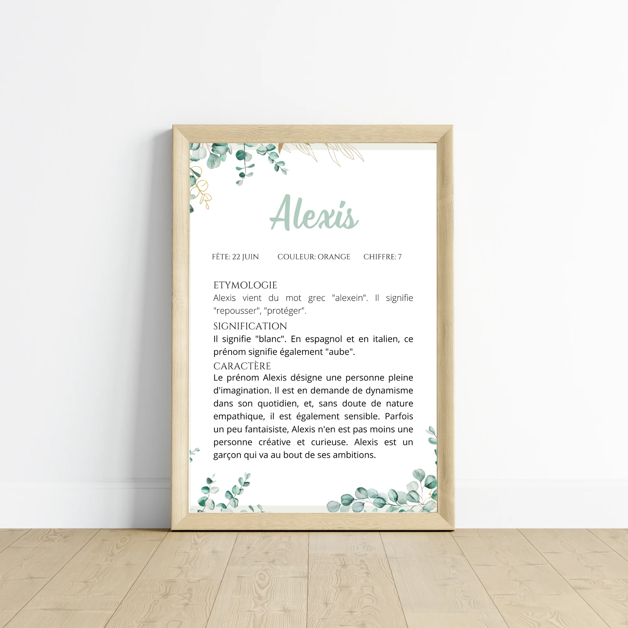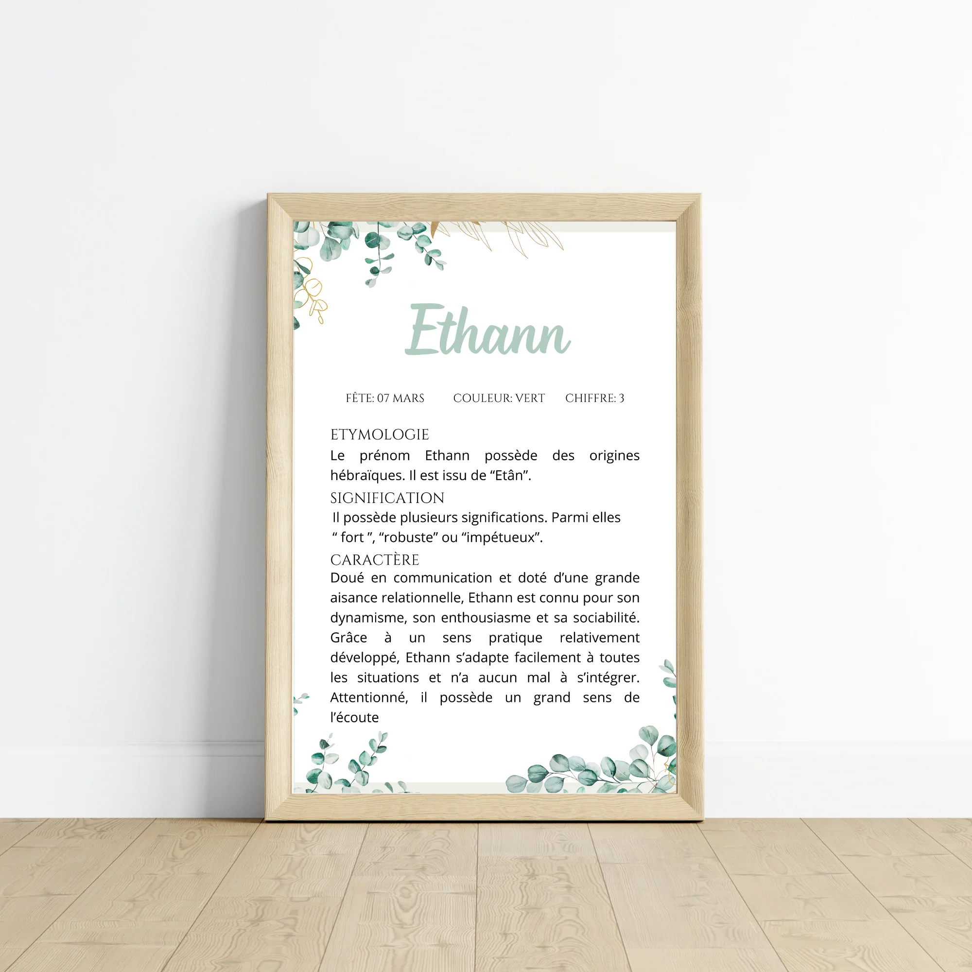 💖 Affiche prénom avec l’étymologie, le caractère ainsi que la fête correspondante au prénom choisi.