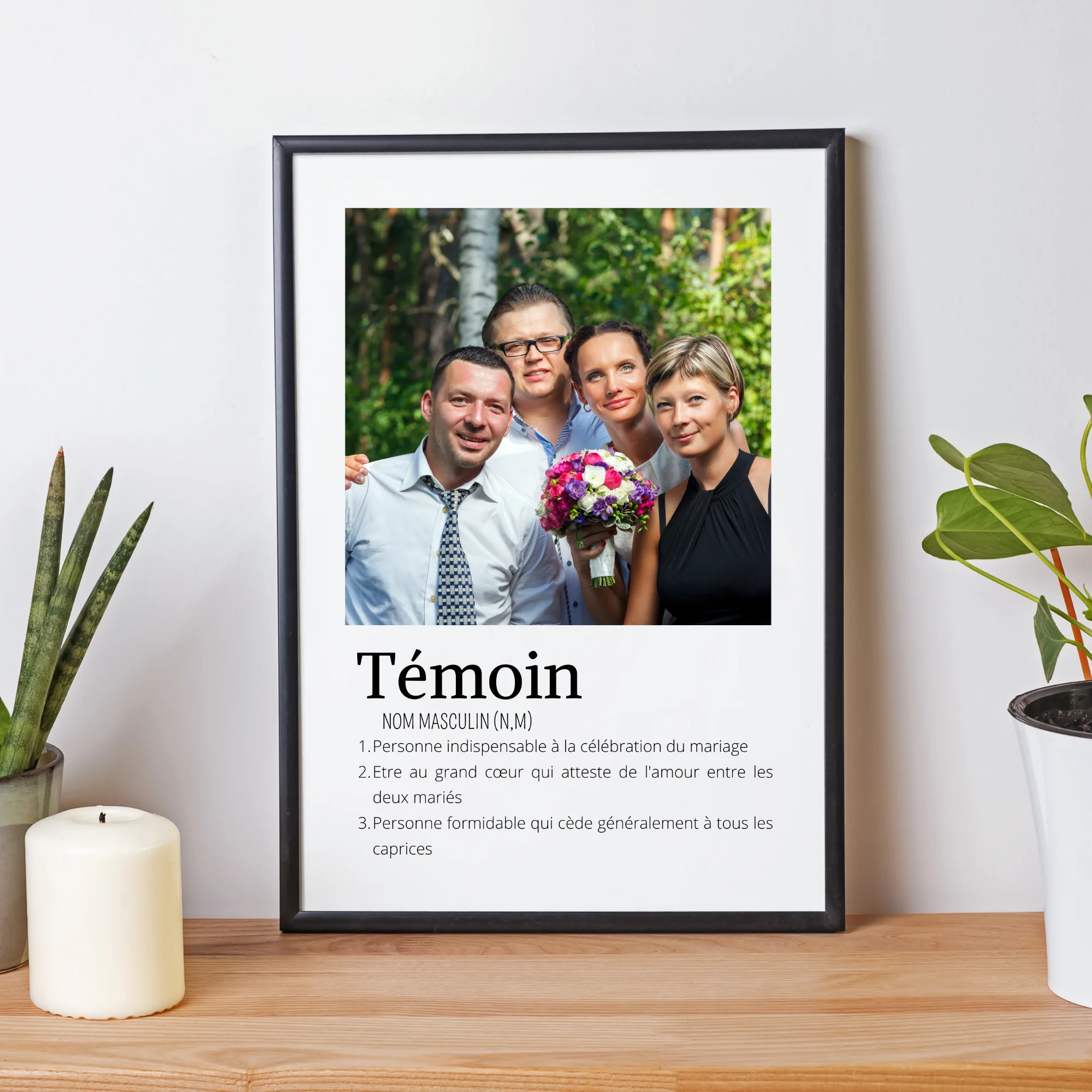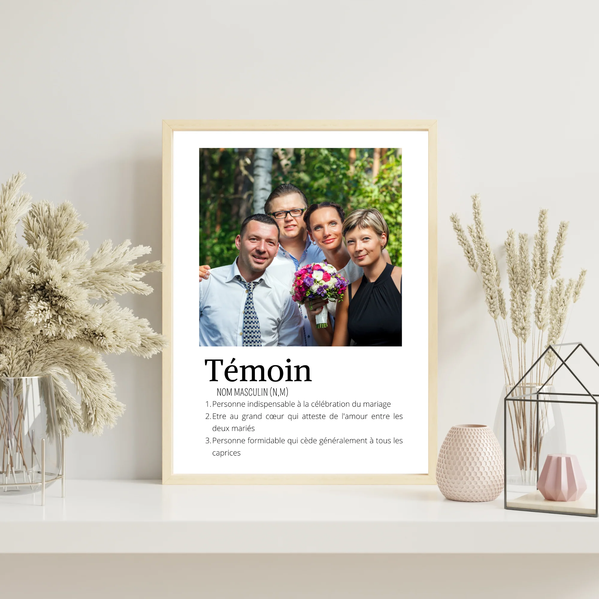 ❤️ Jolie affiche de définition témoin décorée avec la photo de votre choix et une définition d’un.e super témoin.