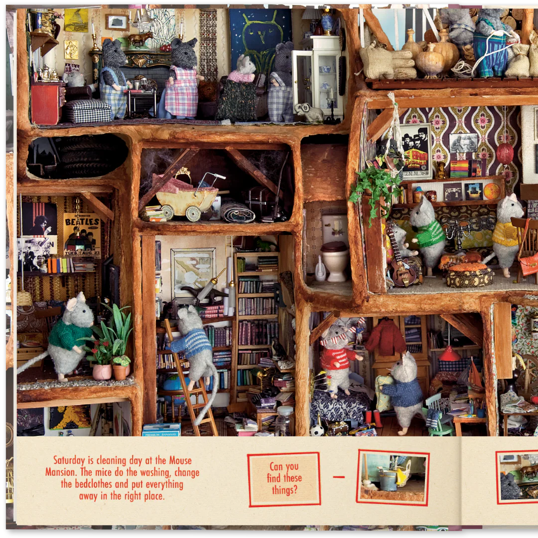 Ich sehe was, was du nicht siehst! Mit seinem nostalgischen Charme ist die wunderbar wuselige, handgemachte Mäusehauswelt von Sam und Julia ein absoluter Sehnsuchtsort und ein Wimmelbuch par excellence. Wohltuend bleibt der Blick hier haften, verliert sich der kleine wie große Betrachter in den liebevoll detailgetreuen Bildern. Suchen, finden, entdecken und staunen: Hier wimmelt es von süßen Mäusen!