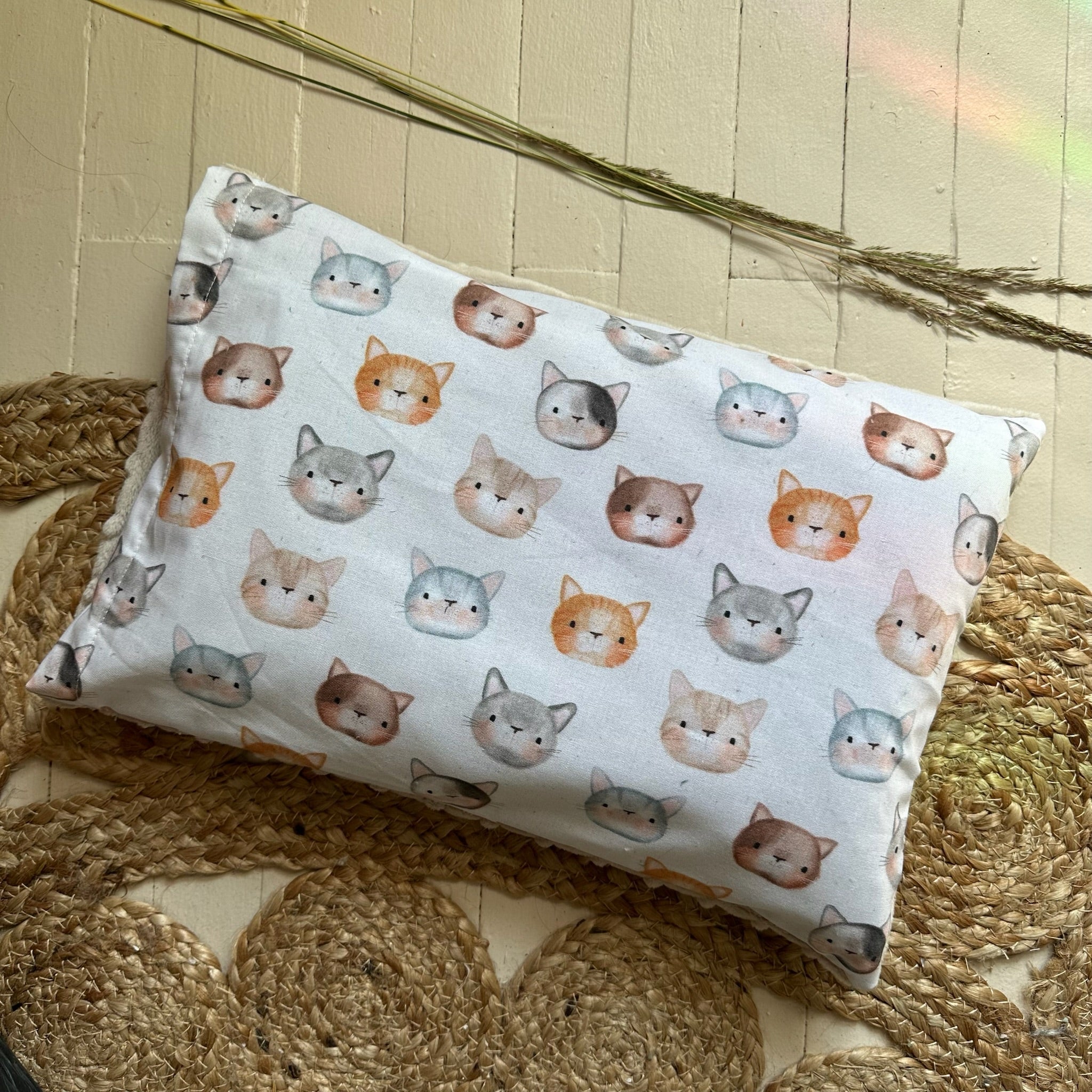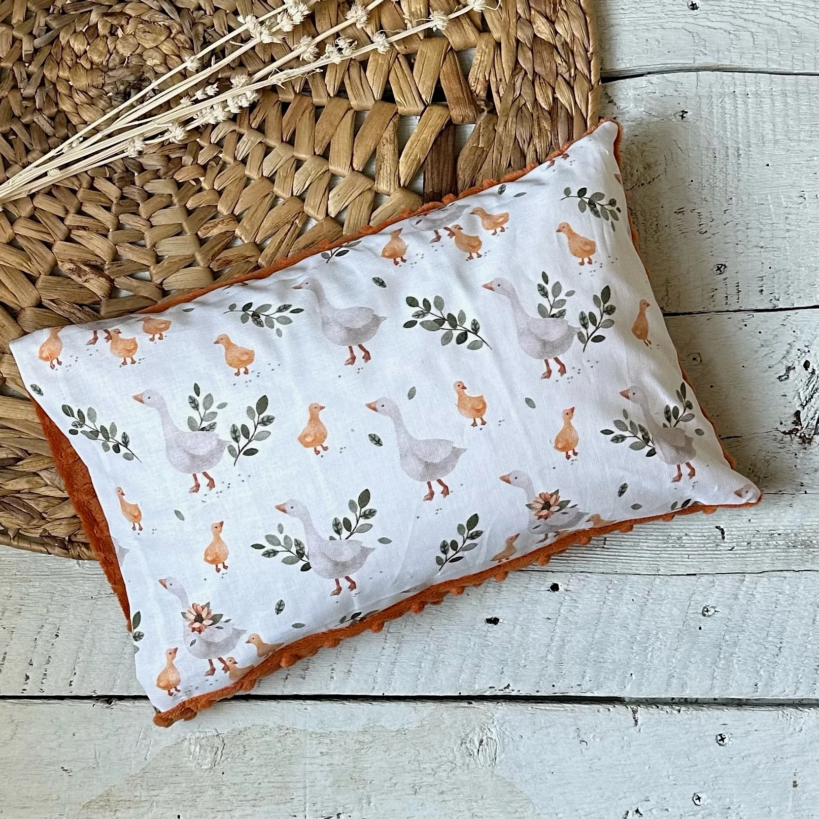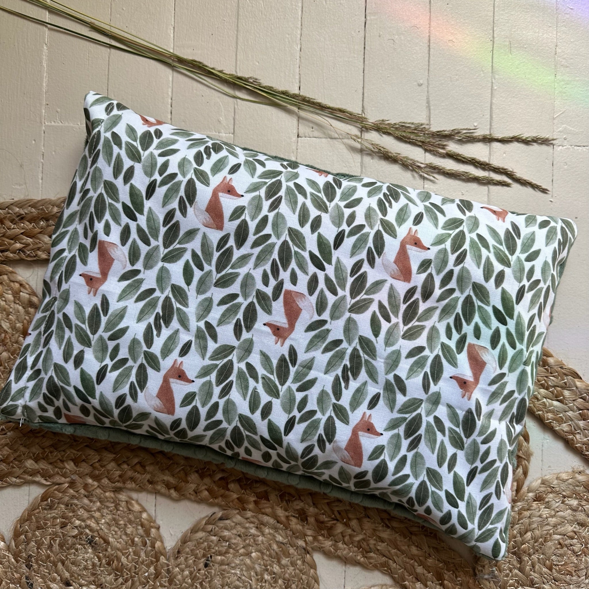 La taie de l’oreiller mesure 10×16 pouces. Cet oreiller fait un parfait premier oreiller, avant l’âge de 2 ans il peut être utilisé comme petit coussin d’allaitement, ou pour y déposer bébé lors des périodes d’éveils particulièrement les bébés qui ont des reflux!